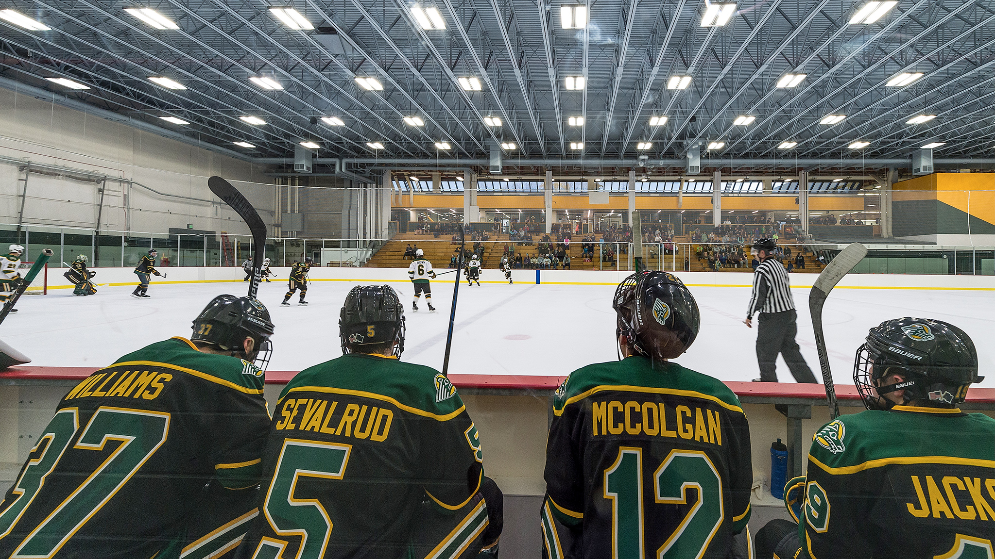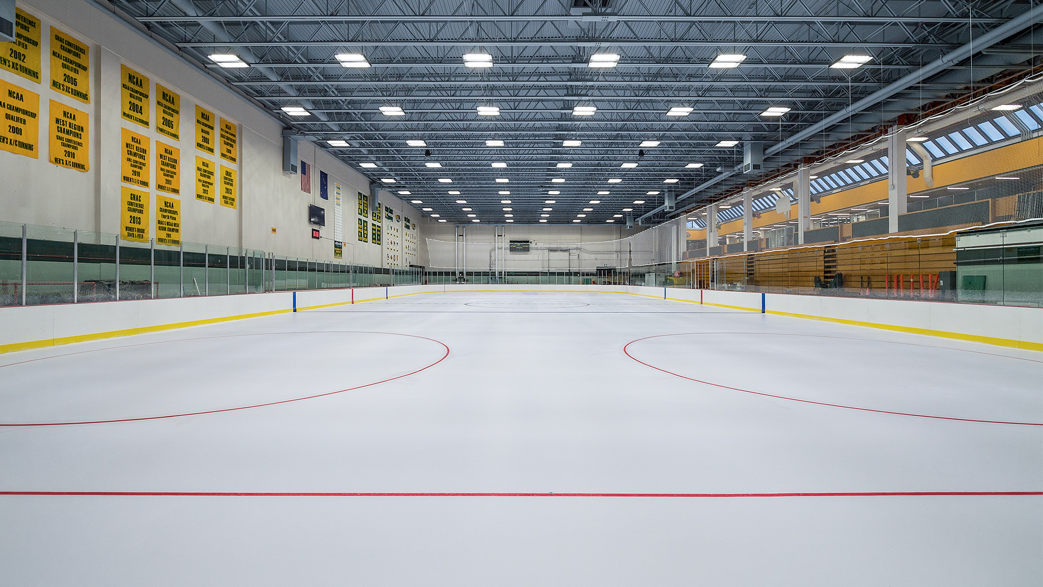The Wells Fargo Sports Center renewal plan was designed to minimize disruption to the athletics programs, administrative offices, and student/community functions within the building. The renewal included correcting code deficiencies, replacing obsolete building systems, renovation and expansion of the Division 1 hockey program facilities, replacement of the aging ice plant and ice sheet, and improvement to recreational athletic facilities that serve both students and the community. The project was completed in two phases over summer breaks. The design of the Chuck Homan Ice Rink features a hybrid Co2/Ammonia ice plant with a heat recovery system capable of supplying waste heat rejected from the ice making process to other functions in the building such as the swimming pool, domestic water system, floor slab heating, and Zamboni ice melt pit.